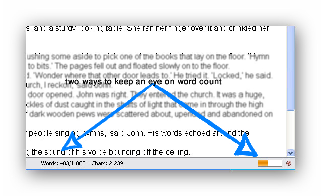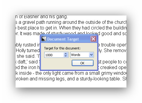 So I press the word count button in the bottom right of my work screen and up pops a window in which I set the number of words.