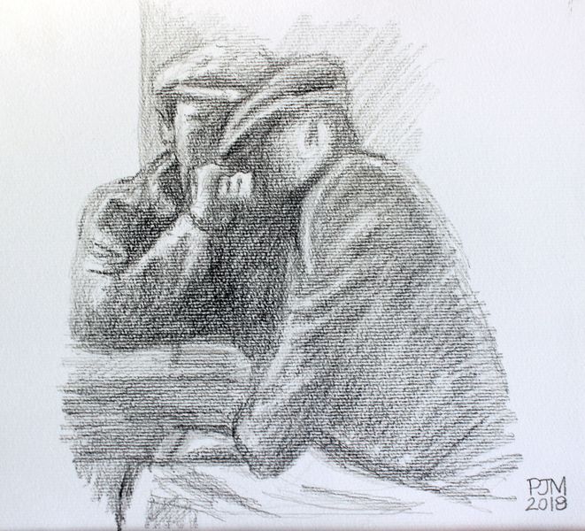 ‘Deep in Conversation’ (pencil sketch, 2018)